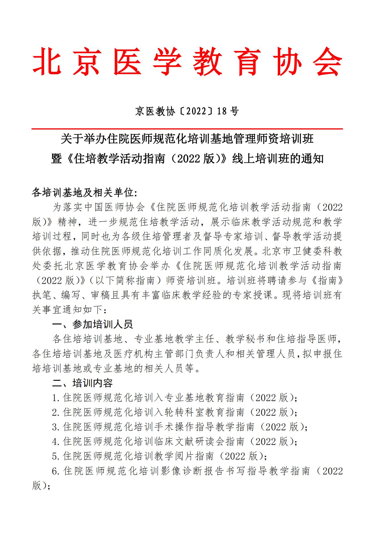 关于举办住院医师规范化培训基地管理师资培训班暨《住培教学活动指南(2022 版)》线上培训班的通知