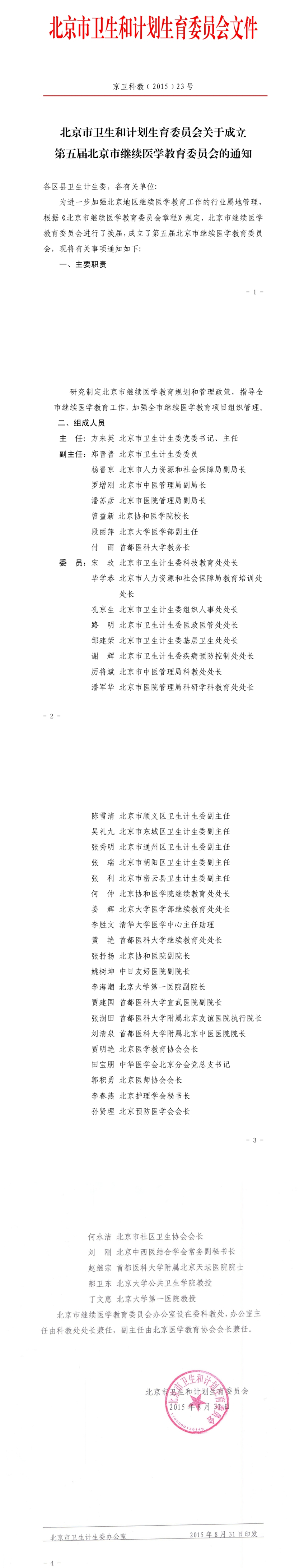 北京市卫计委成立北京市第五届继续医学教育委员会