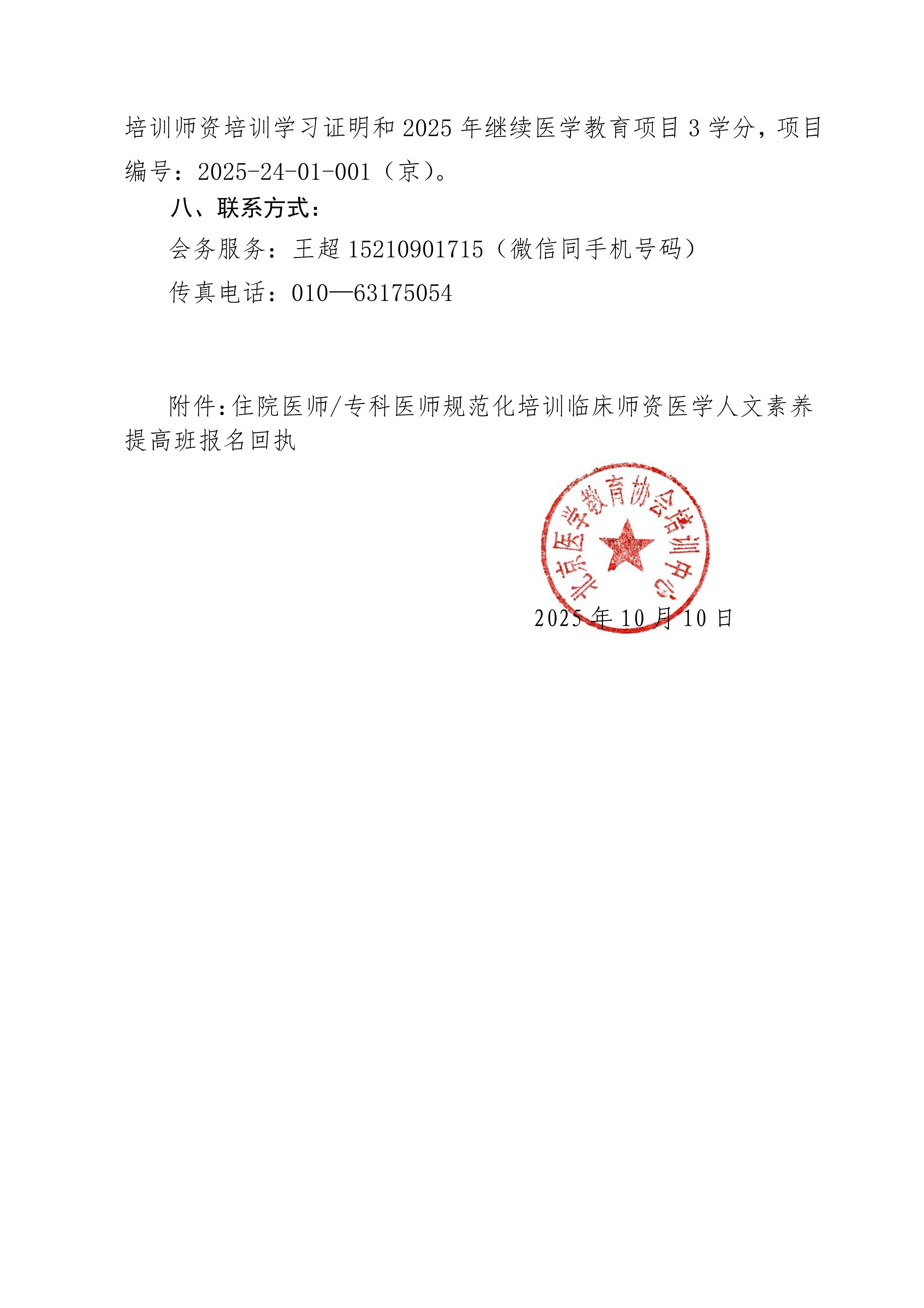关于举办住院医师/专科医师规范化培训 临床师资医学人文素养提高班的通知