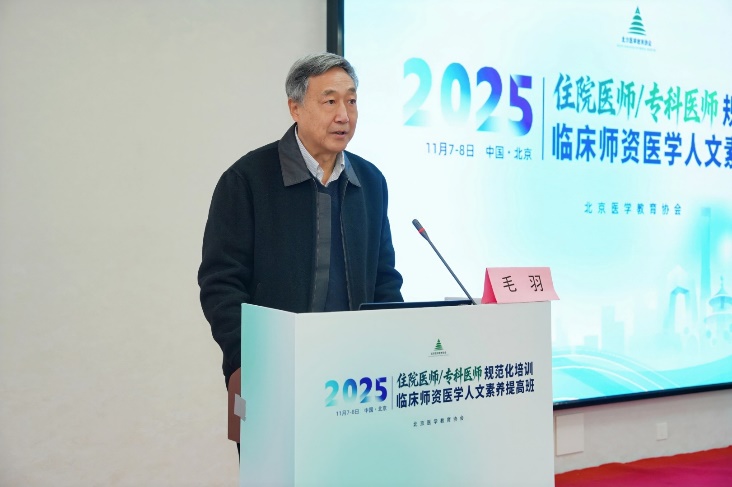 北京医学教育协会会长毛羽教授在致辞中指出医学人文是医疗实践的灵魂,指导医师需以身作则,将人文关怀融入临床带教全过程。新时代医学教育需将人文精神与专业技能深度融合,推动“有温度的医学教育”。
