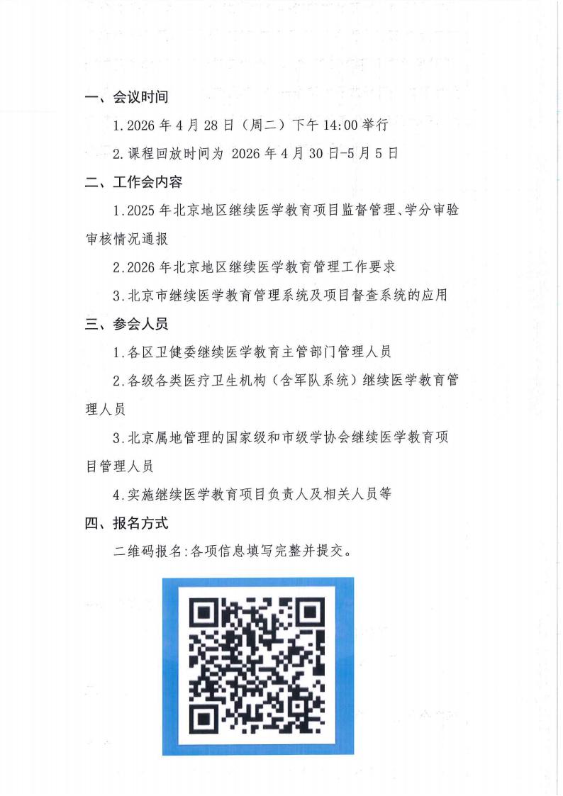 关于召开2026年北京市继续医学教育管理干部工作会的通知
